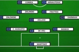 在这份名单中,替补门将何塞普-马丁内斯顶替索默,阿切尔比、巴斯托尼、迪马尔科、邓弗里斯以及主力中场全都替补休息,劳塔罗因伤缺阵,恰尔汗奥卢因停赛无法出战。